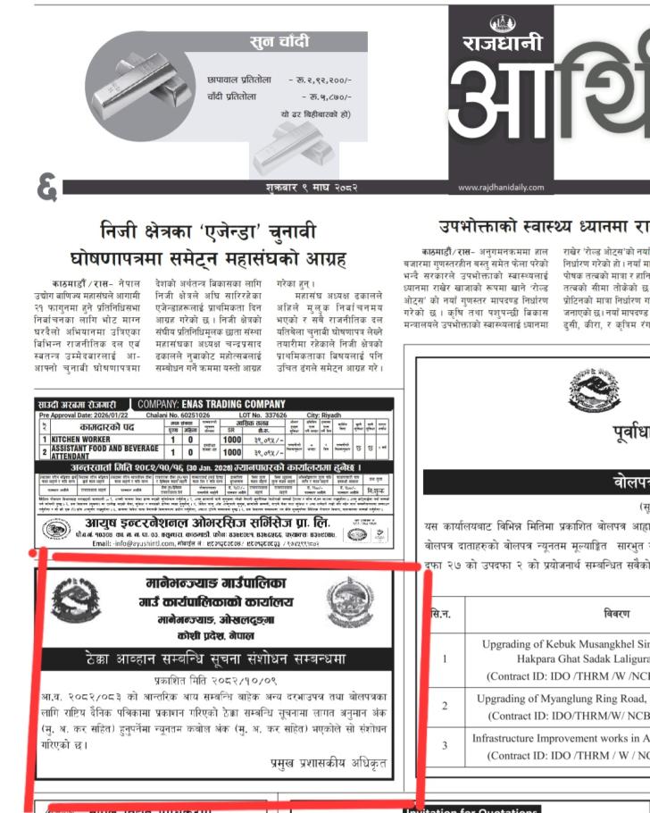 ठेक्का आव्हान सम्बन्धी सूचना संशोधन सम्बन्धि सूचना