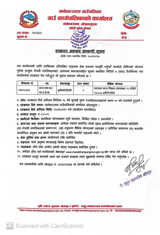 दर्खास्त आवहान सम्बन्धी सूचना !