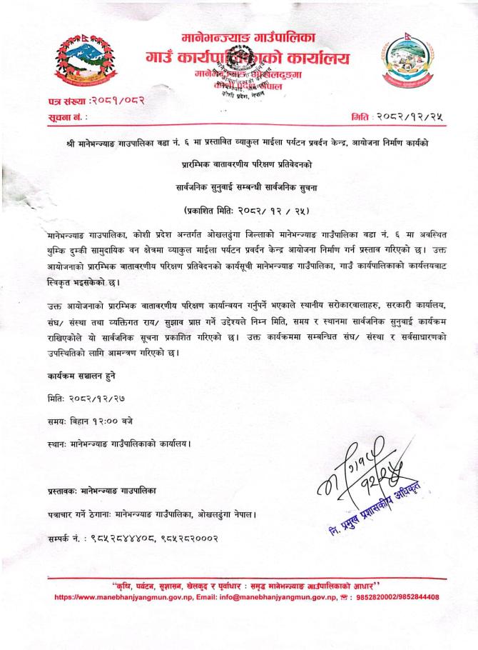 » प्रारम्भिक वातावरणीय परिक्षण प्रतिवेदनको सार्वजनिक सुनुवाई सम्बन्धी सूचना
