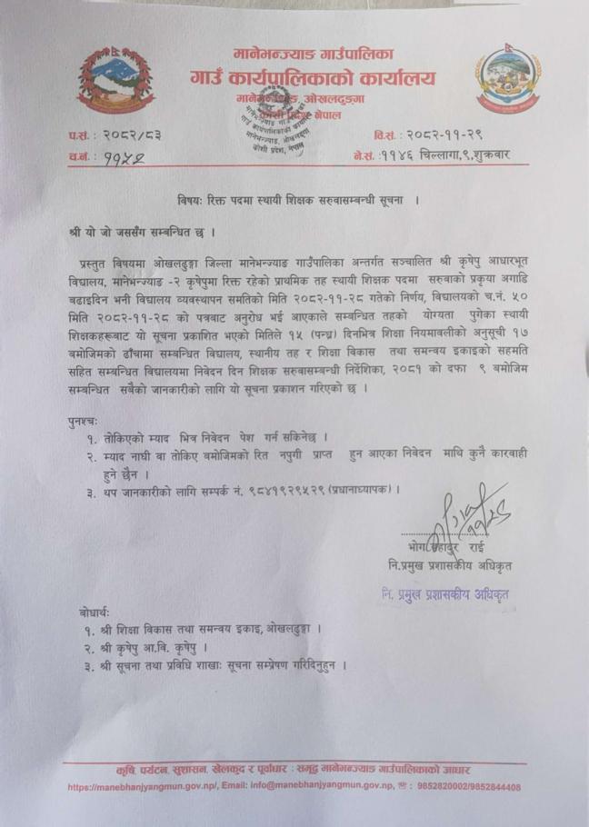 » रिक्त पदमा स्थायी शिक्षक सरुवा सम्बन्धी सूचना