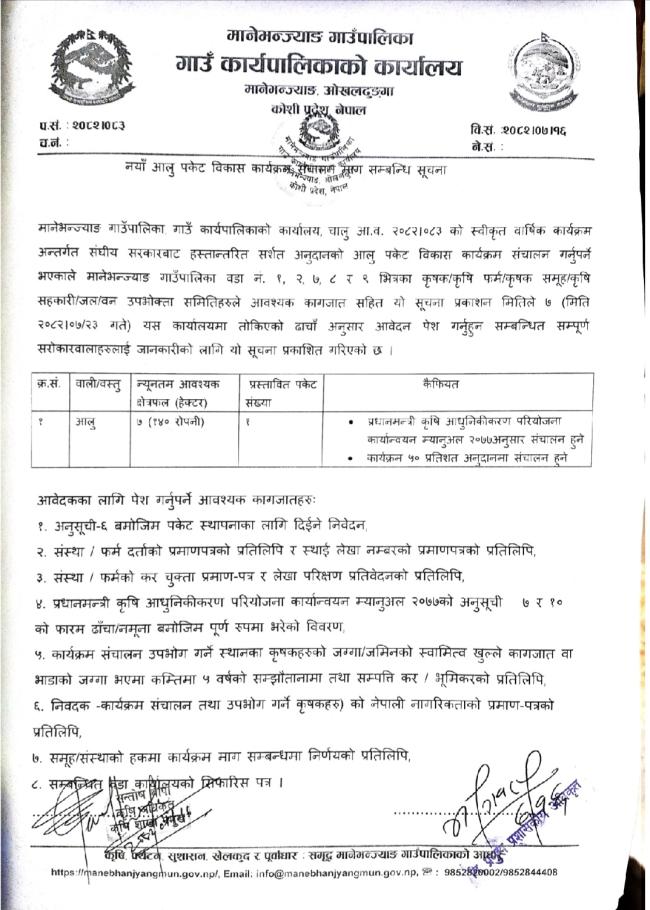 आलु पकेट कार्यक्रम सम्बन्धी सूचना !